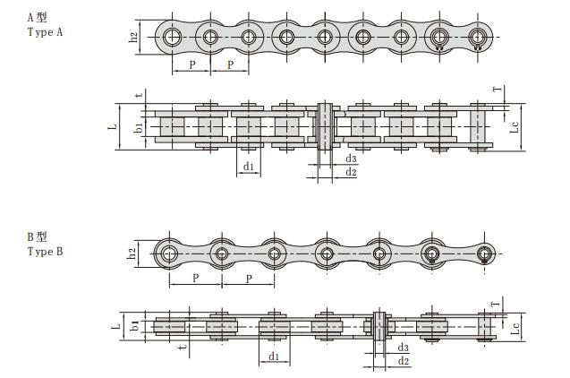 不銹鋼雙節(jié)距加長軸輸送鏈