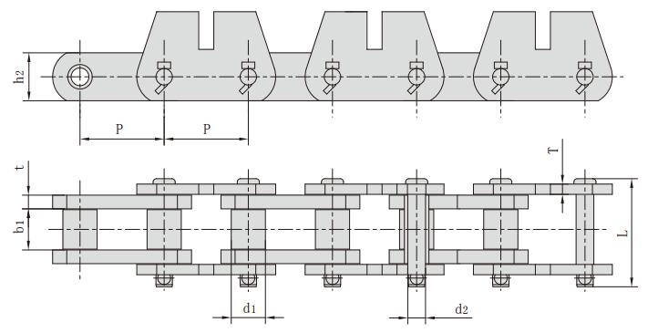 P152F18,帶附板輸送鏈,工程鏈條廠家,鏈條規格參數