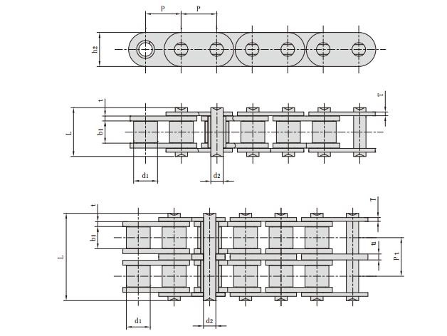 汽車發動機正時鏈條主要型號有:節距,滾子直徑,內節內寬,銷軸直徑,銷軸長度,內鏈板高度,鏈板厚度,排距,抗拉強度,每米長重