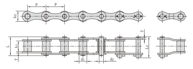 鏈條型號(hào) 節(jié)距 滾子直徑 內(nèi)節(jié)內(nèi)寬 銷軸直徑 銷軸長(zhǎng)度 內(nèi)鏈板高度 鏈板厚度 抗拉強(qiáng)度 平均抗拉強(qiáng)度 每米長(zhǎng)重