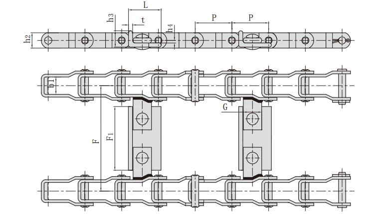 鏈號 節距 內節內寬 鏈板高度 附板尺寸 抗拉強度