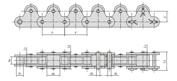 C2060-1LTRF6_帶頂滾輪雙節距輸送鏈