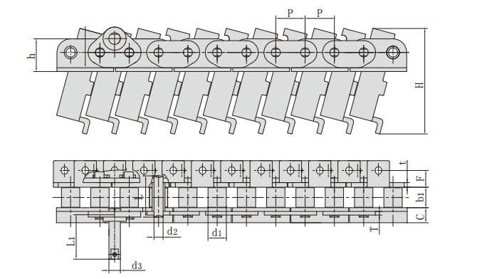 P d1 b1 d2 d3 L L1 h t/T H F C Q