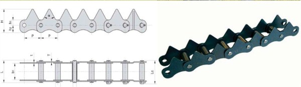 夾持鏈鏈板上頂齒的夾角是重要的參數(shù),它與鏈條的工作性能有很大的關(guān)系。使用時,莖稈能否均勻地同輸送鏈同步前進,并且使相鄰鏈板齒側(cè)間具有的空間盡可能的大,這將取決于頂齒間夾角的數(shù)值。這是因為頂齒的夾角與莖稈空間和夾持力的大小有關(guān)的緣故。頂齒的夾角要根據(jù)不同收割機的實際使用要求來確定,因此標(biāo)準(zhǔn)中沒有規(guī)定出該夾角數(shù)值,一般常用的夾角數(shù)值有70°、90°、60°和75°等,而現(xiàn)在常用的鏈板外形型式和尺寸要求在JB/T 8883中已有規(guī)定。目前在使用中的農(nóng)業(yè)機械用夾持輸送鏈(特別是一些內(nèi)節(jié)內(nèi)寬尺寸很大的夾持鏈),還有采用帶翻孔結(jié)構(gòu)的內(nèi)鏈板,內(nèi)鏈板板孔翻邊是將套筒和內(nèi)鏈板做成了一體,鏈條結(jié)構(gòu)上省去了套筒這一零件,這樣結(jié)構(gòu)的好處是不存在鏈板與套筒間的聯(lián)接牢固度問題,但為了保證鏈條的整體牢固度,必須保證外鏈節(jié)上銷軸鉚合的質(zhì)量。但是帶翻孔結(jié)構(gòu)的內(nèi)鏈板一般只能采用低碳結(jié)構(gòu)鋼制造,這種鏈板的抗拉強度勢必會比中碳結(jié)構(gòu)鋼制造的內(nèi)鏈板(一般不帶翻孔結(jié)構(gòu))要低一些,這樣就會降低整鏈的抗拉性能。所以,越來越多的收割機新機型所用夾持鏈條內(nèi)鏈板都趨于采用不翻孔結(jié)構(gòu),而采用帶套筒的夾持鏈,使鏈條的穩(wěn)定性更好、強度更高。由于翻孔結(jié)構(gòu)夾持鏈條目前市場上用量仍舊比較大,所以JB/T 8883- 201X 中仍保留了翻孔鏈板結(jié)構(gòu)的鏈條。